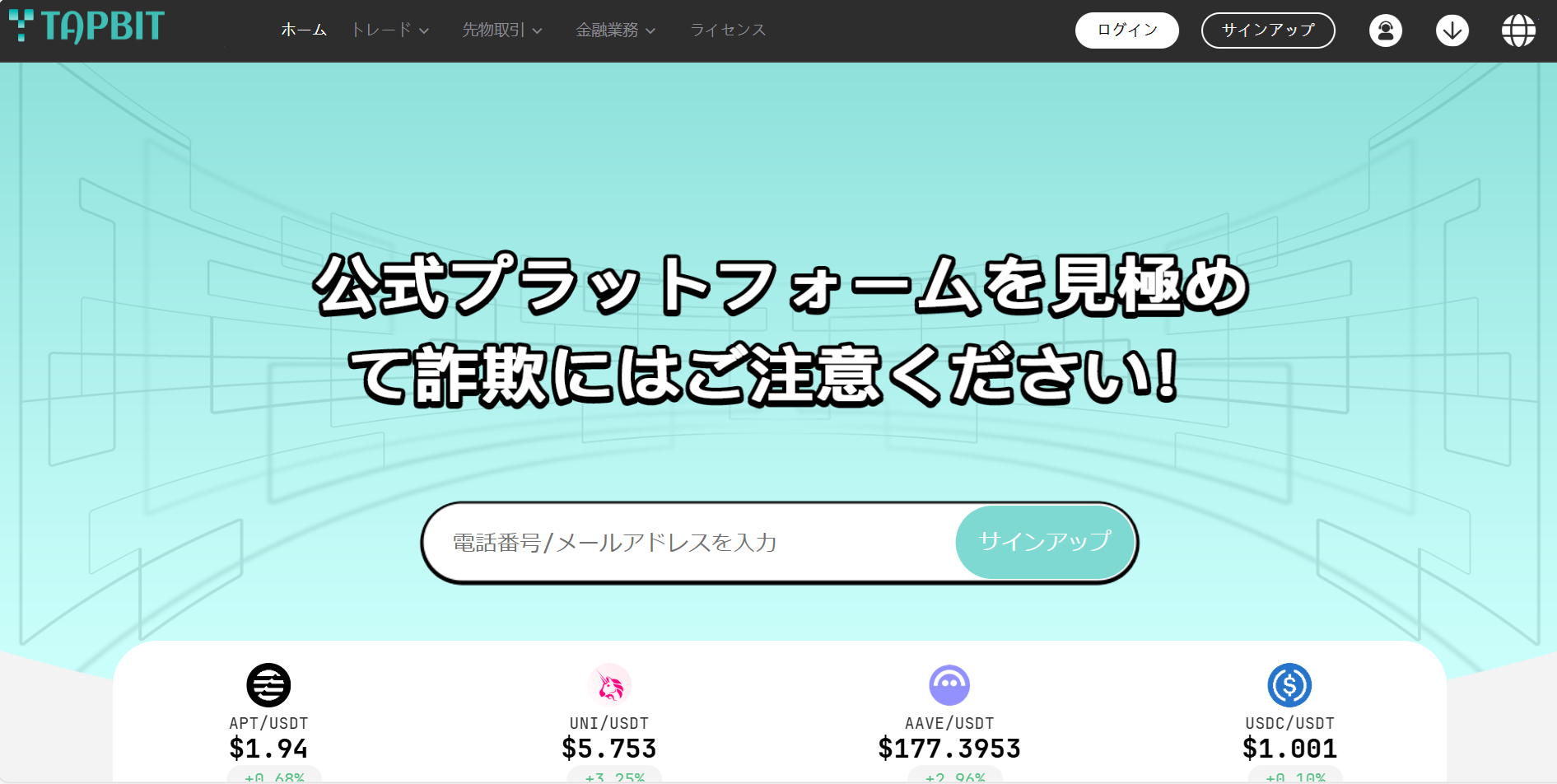 【警告】架空の取引所「taijisoft.com~TAPBIT(偽)~」にご注意ください